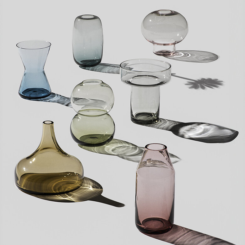The vases in the Midsummer series are an example of products in which the quality of seduction is pronounced. Whether placed individually or arranged as an ensemble, they are eye-catching with their different shapes and delicate colouring. The quality of the glass and the precision craftsmanship are just as impressive as the carefully balanced proportions.
