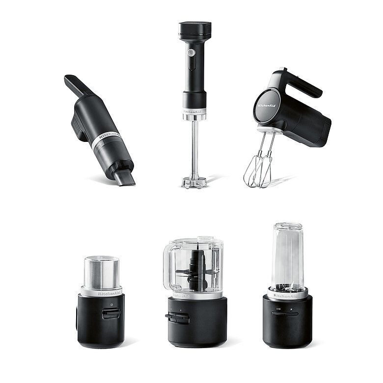 One example of the quality of use is the KitchenAid Go Cordless suite of kitchen appliances. All appliances share a removable 12-volt rechargeable battery, whichenables use independent of electricity.