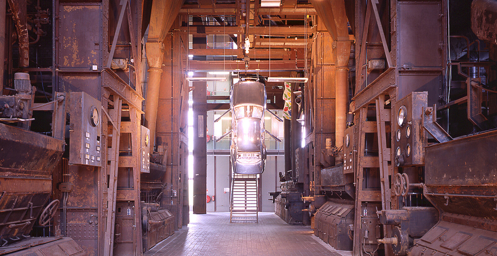 In 1993, Audi introduced the Audi Space Frame, the first full aluminium body of the world, at the International Motorshow IAA in Frankfurt, Germany. With a weight of only 180 kilogramms and its polished surface, the coachwork is pending with doors wide open from the ceiling of the Schürerstand (stoker’s station). For sure, this installation in a sacral style has contributed to the former boiler house of Zollverein being reverently called a “cathedral of industrial culture”.